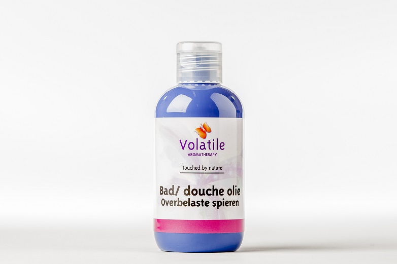 Bad-doucheolie belaste spieren Met o.a. jeneverbes, cypres, lavendel en citroen.