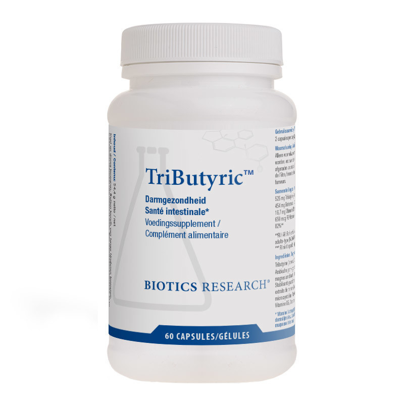 TriButyric van Biotics 60 capsules is een uniek voedingssupplement met een complex van boterzuur, pantotheenzuur en vitamine A. Dit supplement ondersteunt de darmenergie. Wij hebben ook een mooi alternatief in ons assortiment zoals Butyflam van Nutrined.