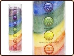 Prachtige kaars met maar liefst 100 brand uren. De combinatie van de chakrakleuren, zorgt voor een mooi evenwicht, die van boven naar beneden alle energiepunten aanraakt. Door hem te branden kun je net even dat beetje extra steun ervaren, zonder de knelpunten van die chakra's te ondervinden. Elke kleur bevat bovendien zijn eigen chakrasteentje. Maat kaars: 21 x 7 cm