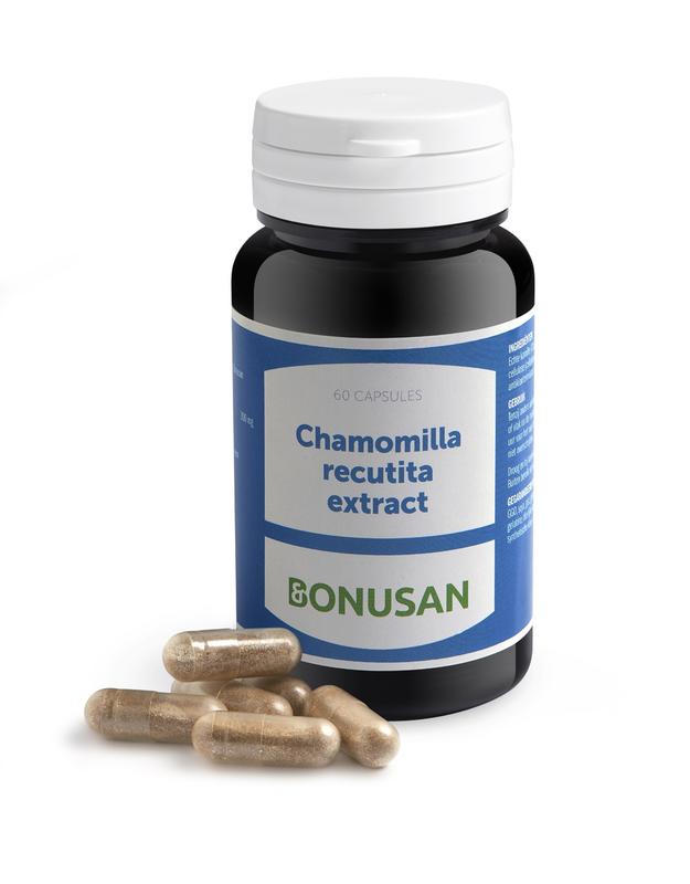 Chamomilla recutita (echte kamille) flores extract, gestandaardiseerd op 2,5-5,5% apigenine en 0,4-0,8% etherische olie 300 mg