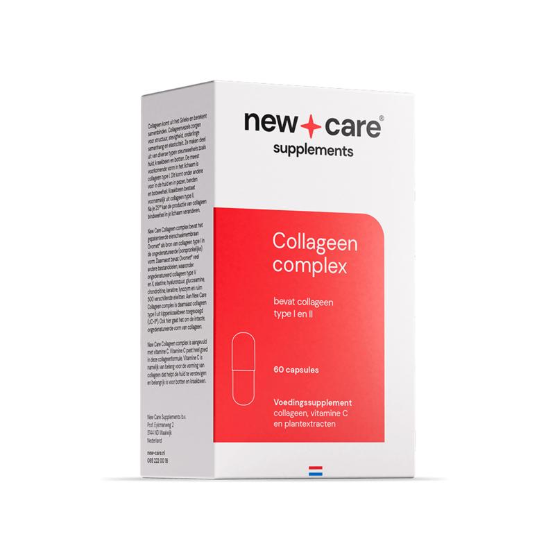 New Care Collageen complex bevat het gepatenteerde eierschaalmembraan Ovomet® met de eigenschap dat de natuurlijke structuur behouden is gebleven. Dit betekent dat collageen type I in de ongedenatureerde (oorspronkelijke) vorm in dit product aanwezig is. Daarnaast bevat Ovomet® door zijn natuurlijke vorm ook veel andere bestanddelen, waaronder ongedenatureerd collageen type V en X, elastine, hyaluronzuur, glucosamine, chondroïtine, keratine, lysozym en meer dan 500 verschillende soorten eiwitten.