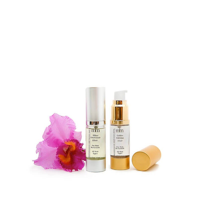 Gold/Silver Elixir Set is Morrocco Method's beginner series of elixir for those looking to restore the vitality of their hair. This set will help to normalize sebaceous glands on an excessively oily or dry scalp and promote overall scalp and hair health and renewal.