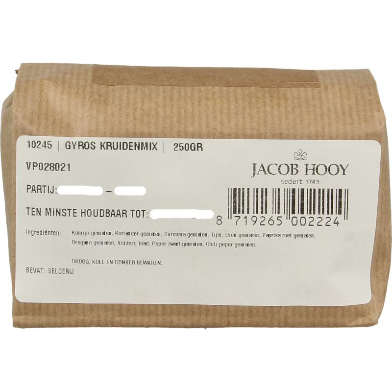 46,6% specerijen, 34% zeezout, 15% smaakversterker, knoflook- en uienpoeder. Gebruik: Meng 15 gram Gyroskruiden met 500gr heerlijk Grieks vlees gerecht.