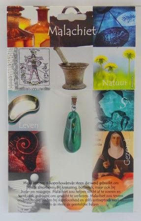 Malachiet is een koperhoudende steen. Malachiet is de steen van de volharding en zorgt voor een geestelijke balans.