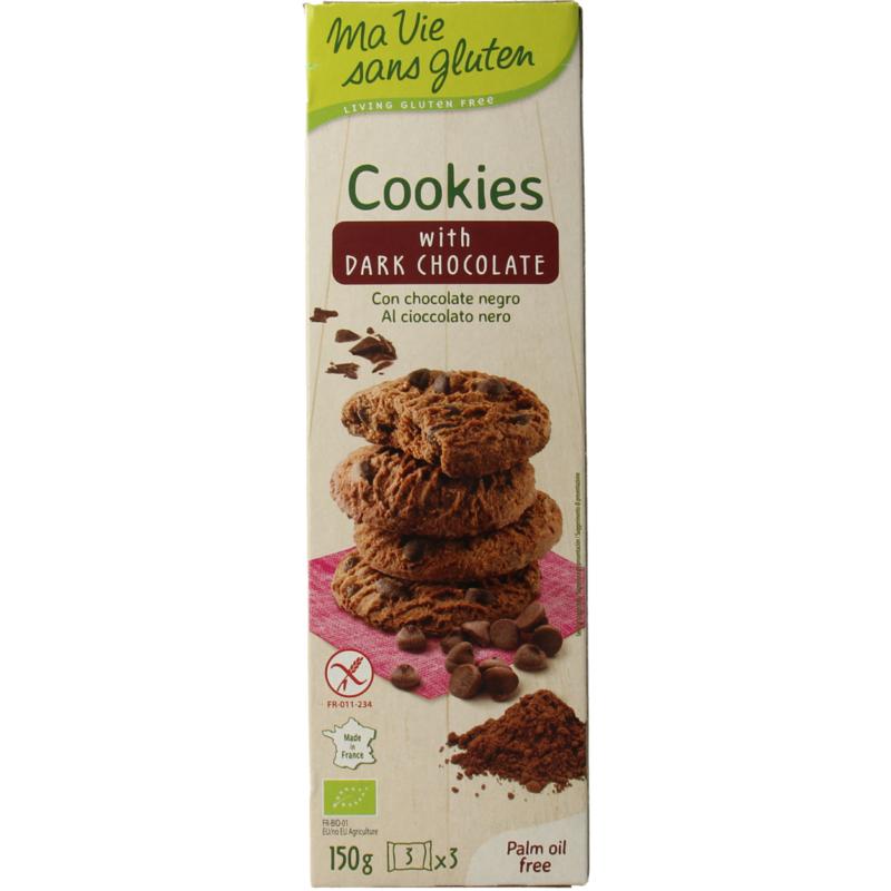 Halfvolkoren rijstmeel*, blonde rietsuiker*, stukjes pure chocolade* (cacao*, rietsuiker*, cacaoboter*), plantaardig vet van palm*, pure chocolade* (cacao*, rietsuiker*, cacaoboter*, vanillepoeder*), aardappelzetmeel*, rijststroop*, zeezout, emulgator: zonnebloemlecithine*, rijsmiddel: amooniumbicarbonaat, psyllium*