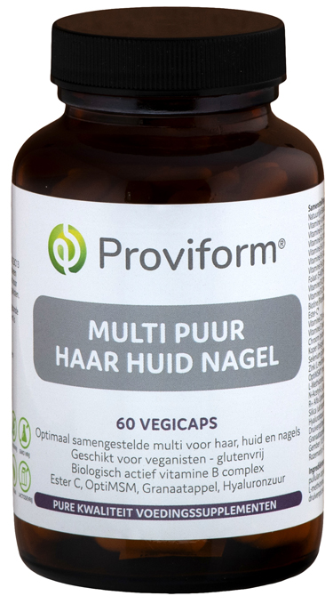 Vitamines, mineralen, vulstof (rijst-extract), vegetarische pullulan capsule, anti-klontermiddel (rijstconcentraat), OptMSM, silica, L-methionine, N-acetyl-L-Cysteïne, alfa liponzuur, hyaluronzuur, druivenpit extract, granaatappel extract, gember, rozemarijn.
