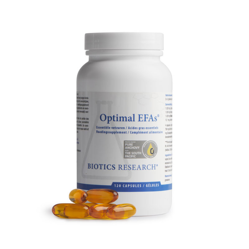 Optimal EFAs is een voedingssupplement en vetzurenpreparaat met een evenwichtig mengsel van Omega 3-, Omega 6- en Omega 9-vetzuren. Optimal EFAs van Biotics Research heeft verschillende gezondheidsvoordelen:
