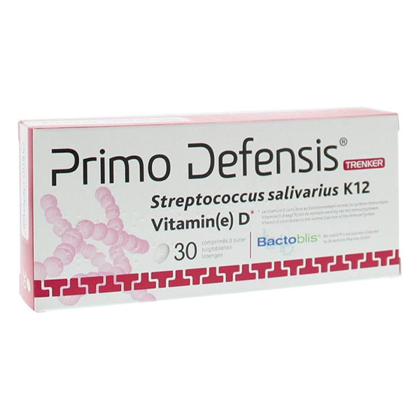 De Streptococcus salivarius K12 is een bacterie die van nature aanwezig is in de mondholte. Wetenschappelijk onderzoek geeft aan dat de Streptococcus salivarius K12 “baceriocines” produceert. Bacteriocines zijn stoffen die in staat zijn om andere bacteriën te elimineren. Dit unieke en natuurlijke voedingssupplement bevat vitamine D dat het immuunsysteem boost en bevat de bacteriestam Streptococcus salivarius K12, waarvan wetenschappelijke studies de effectiviteit op neus-, keel- en oorinfecties hebben aangetoond. Primo Defensis vormt een "eerste beschermende barrière" tegen de verspreiding van slechte bacteriën naar de neus, keel en oren.