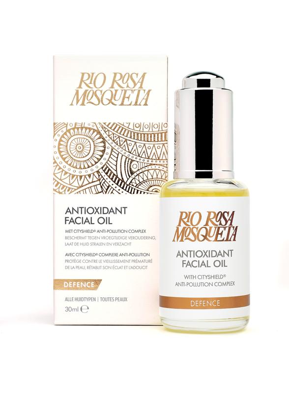 Rio Rosa Mosqueta Antioxidant Facial Oil is een heerlijke, luxe gezichtsolie bomvol antioxidanten, beauty vitamines en essentiële vetzuren. Het bevat Cityshield®, een uniek anti-pollution complex dat de vochtbarrière van de huid versterkt en de weerstand verbetert. Zo ben je op een natuurlijke manier beter beschermd tegen de schadelijke effecten van het weer en luchtvervuiling. Deze beauty olie maakt de huid zacht en soepel en laat haar zichtbaar weer glanzen.