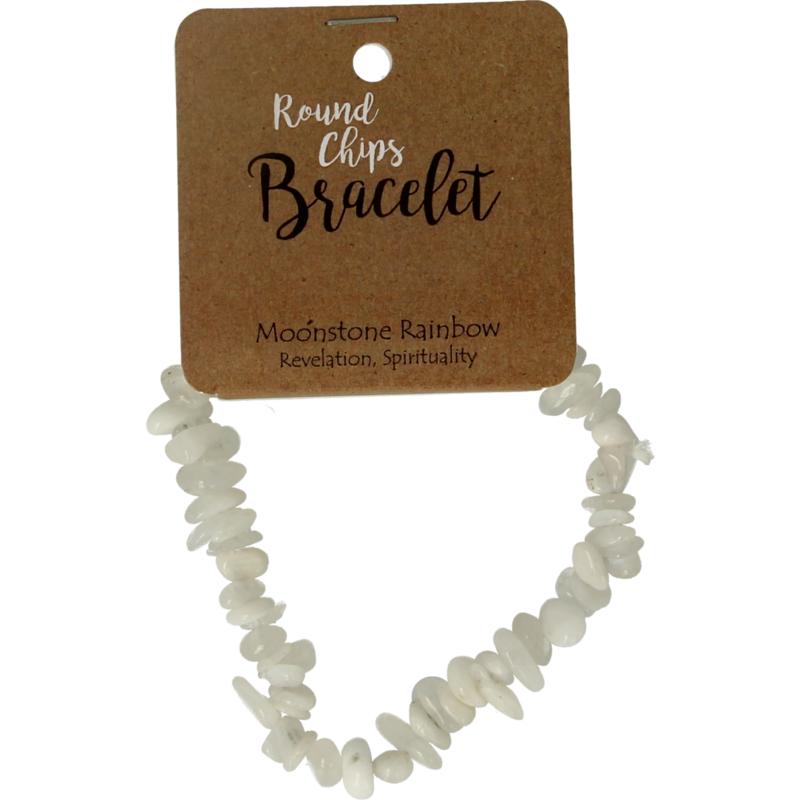 Armband met ronde splitkralen van Maansteen regenboog op een stevig elastiek.Armband van kleine, extra getrommelde steentjes. De goed afgeronde en gepolijste splitsteentjes zorgen voor een optimaal draagcomfort. Het elastiek waarop de steentjes zijn geregen maakt dat de armband door vrijwel iedereen te dragen is: one size fits all!