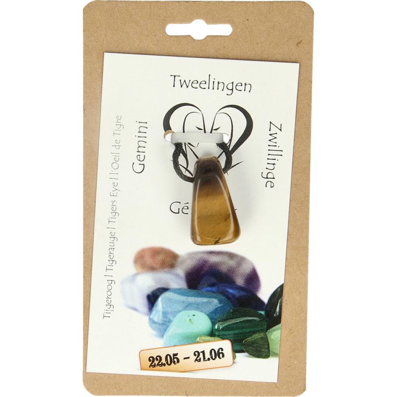 Edelsteen Tijgeroog 15-20mm met anti-allergisch, edelstalen hangeroog passend bij het sterrenbeeld tweelingen.