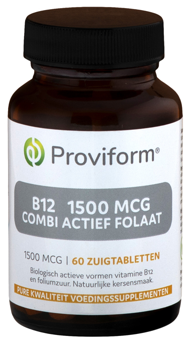 Actief vitamine B12 complex met 750 mcg methylcobalamine, 750 mcg adenosylcobalamine en 500 mcg folaat per zuigtablet. De kleine tabletten hebben een natuurlijke kersensmaak. Ze kunnen gebruikt worden als zuigtablet of als smelttablet onder de tong.