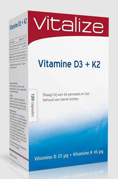 Vitalize Vitamine D3 + K2 is hooggedoseerd. Iedere softcelcapsule bevat maar liefst 25 microgram/µg vitamine D3 en 45 microgram/µg vitamine K2. Beide vitamines zijn opgenomen in actieve vorm. Dit zorgt voor de beste opname in het lichaam.