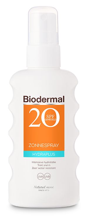 Biodermal Hydraplus Zonnespray SPF 20 bevat geavanceerde en fotostabiele UVA/UVB filters voor onmiddellijke bescherming tegen de schadelijke effecten van zonnestraling.